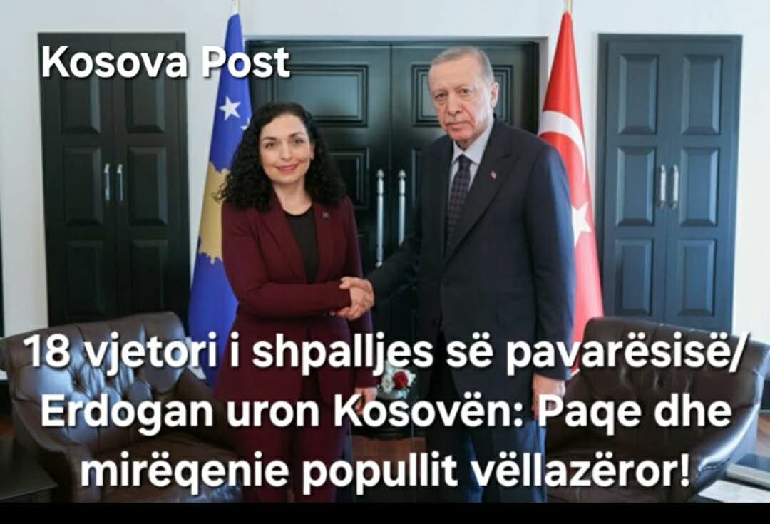 Osmani e ka falënderuar Erdoganin për urimet e tij, duke thënë se Kosova është falënderuese për mbështetjen që ka marrë nga Turqia deri tash.