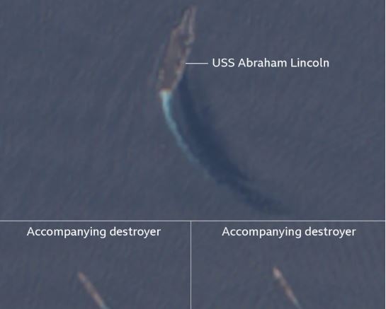 “Ka të ngjarë që ato të jenë pjesë e grupit të sulmit të aeroplanmbajtëseve Lincoln, por nuk mund të identifikojmë saktësisht se cilat anije janë të dukshme.” – raporton BBC, transmeton Klankosova.tv