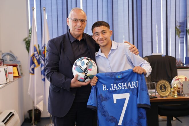 Futbollisti 15-vjeçar i Fushë Kosovës U15, Belgin Jashari është takuar sot me kryetarin e Federatës së Futbollit të Kosovës, Agim Ademin në zyret e Federatës, transmeton KosovaPost.