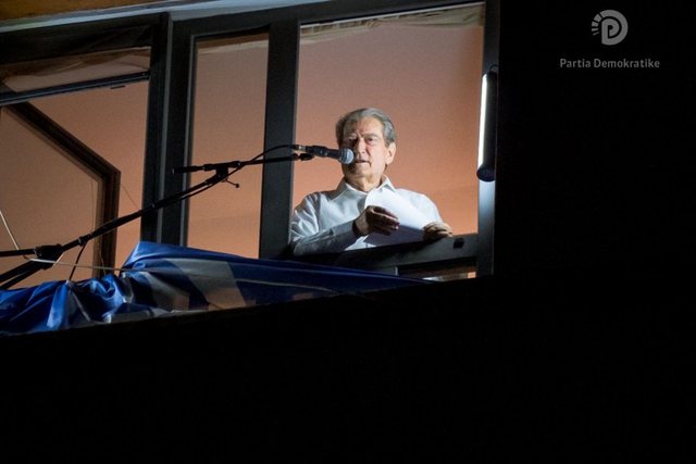 ‘Këtu nga Rruga e Shpresës, nga ky ballkon, nga ky podium unë shoh një horizont që nuk e kemi parë 11 vite! Unë shoh fitore, fitore, fitore!’, deklaroi kryedemokrati Sali Berisha.