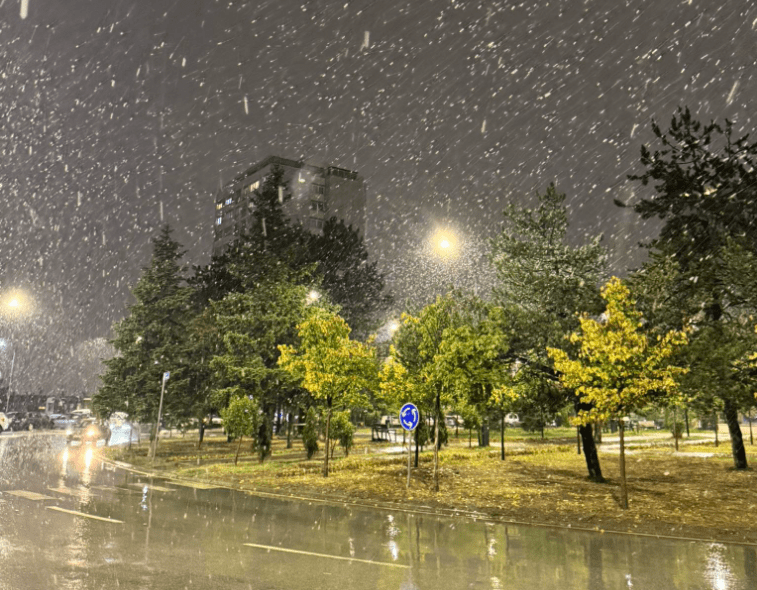 Në disa imazhe të publikuara nga qytetarët shihet se flluskat e para të borës kanë arritur në kryeqytet.