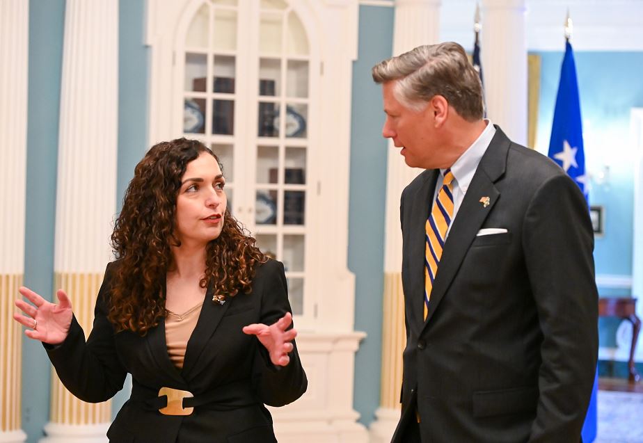“Zëvendës Sekretari i Shtetit Christopher Landau u takua me Presidenten e Kosovës Vjosa Osmani-Sadriu”.