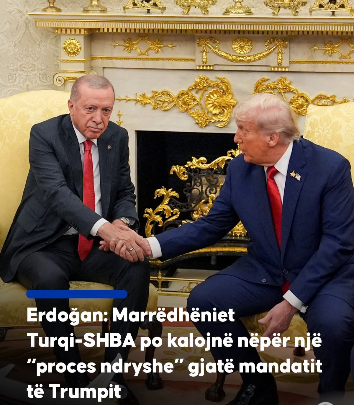 “Po përjetojmë një proces ndryshe në marrëdhëniet turko-amerikane gjatë mandatit të parë dhe të dytë të z. Trump”, tha Erdoğan përkrah Trumpit gjatë një vizite në Zyrën Ovale.