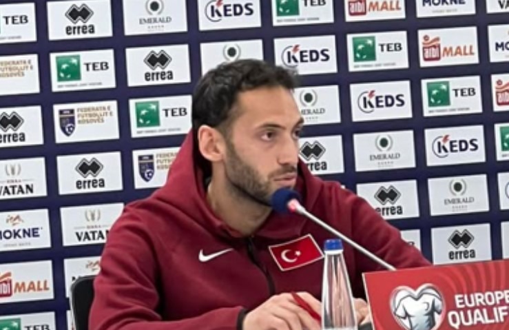 Në konferencë janë paraqitur trajneri i Turqisë, Vincenzo Montella dhe ylli i Interit, Hakan Çalhanoglu.