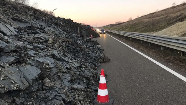 Në një pjesë të autostradës Ibrahim Rugova, segmenti Suharekë-Prizren ka rrëshqitur dheu duke ngadalësuar tej mase qarkullimin e automjeteve.