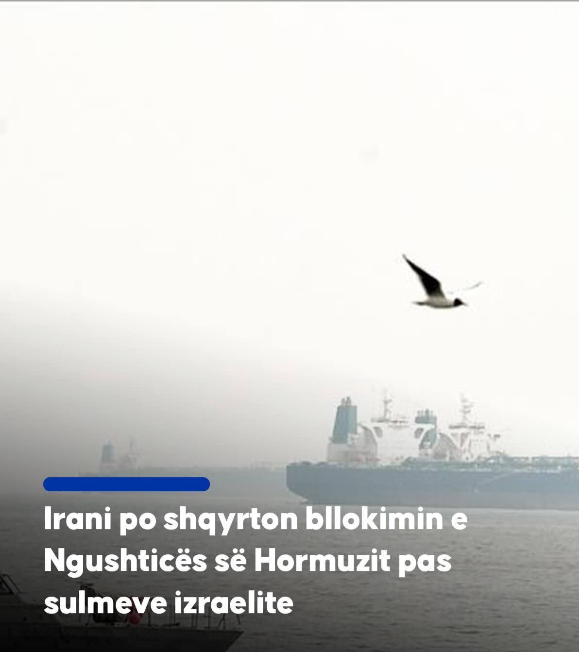 “Irani po shqyrton bllokimin e Ngushticës së Hormuzit në Gjirin Persik, nga e cila kalojnë më shumë se 17 milionë fuçi nafte për çdo ditë”, tha Kowsari.