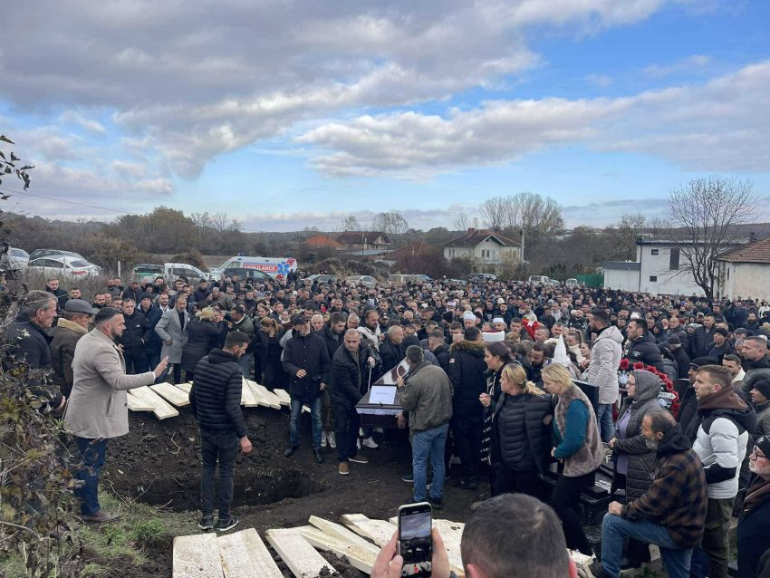 Ceremona e varrimit tashmë ka nisur dhe qindra pjesëmarrës po marrin pjesë, derisa një grup djemsh të rinj kanë veshur bluza me fotografitë e viktimave që humbën jetën para dy netësh nga plumbat që morën nga dorasi Jon Hoti.