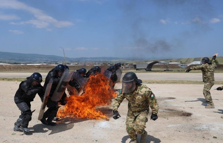Karabinierët italianë nga Njësia Speciale Shumëkombëshe (MSU) dhe trajnerët hungarezë nga Batalioni Rezervë Taktik i KFOR-it, zhvilluan trajnimin për frikën nga zjarri, transmeton KosovaPost.