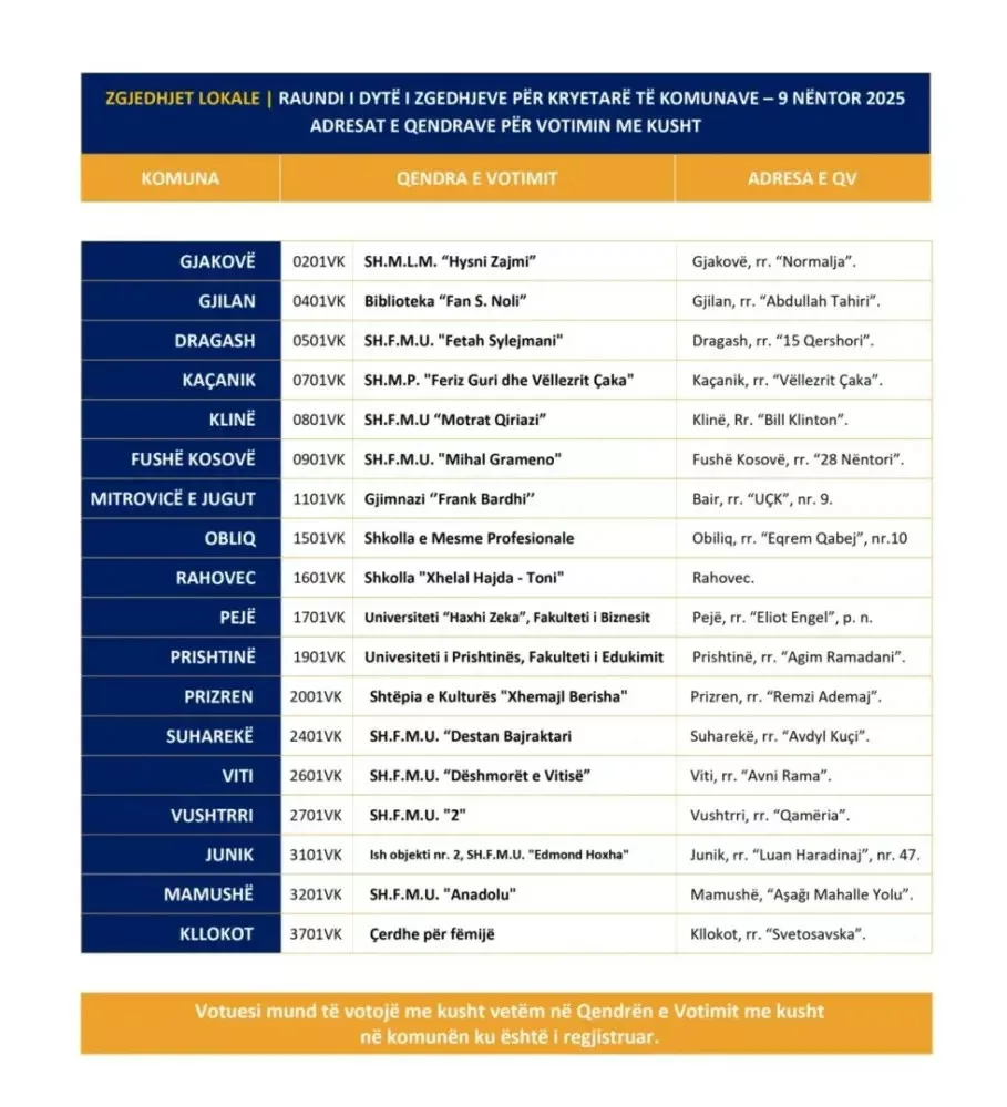 Më 9 nëntor do të hapen 18 qendra votimi për votim me kusht, me gjithsej 20 vendvotime.