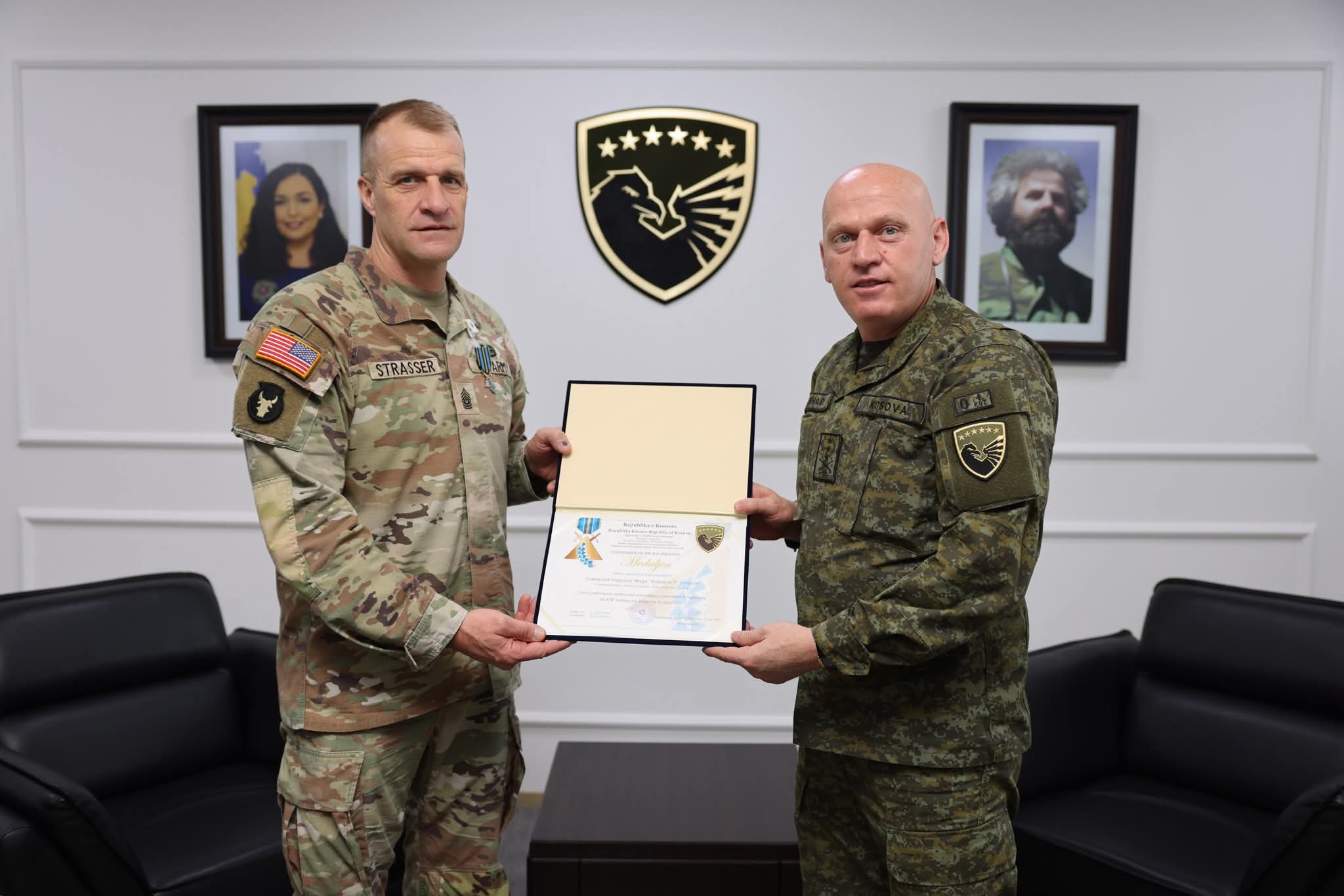 Në fund të takimit, Komandanti i FSK-së, Gjenerallejtënant Bashkim Jashari, e dekoroi Rreshter Majorin e Komandës Strasser me medaljen “Shërbim Vetëmohues” për mbështetjen e vazhdueshme ndaj Forcës së Sigurisë së Kosovës.