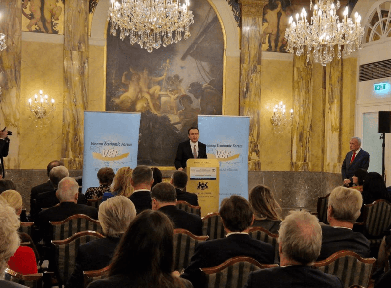 Në përmbyllje të fjalës së tij, Kryeministri Kurti shprehu falënderimin dhe mirënjohjen e tij për besimin, partneritetin dhe vlerësimin e Forumit Ekonomik të Vjenës.