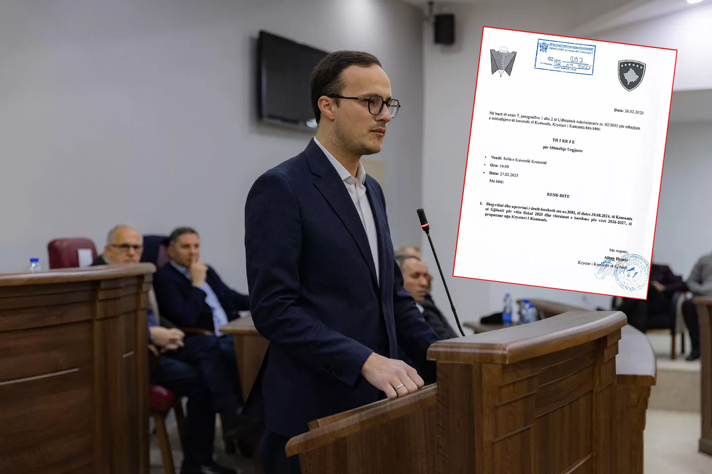 “Gjithashtu, në KPF u pajtuam që nesër, më 27.02.2025, si kryetar i komunës të thërras seancën e radhës urgjente, me fillim nga ora 10:00. Pika e vetme e rendit të ditës do të jetë shqyrtimi dhe aprovimi i projektbuxhetit për vitin 2025, të propozuar nga unë si kryetar i komunës”, tha Alban Hyseni.