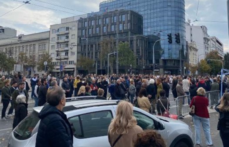 Kryqëzimi i rrugëve është mbyllur sërish për shkak të grumbullimit të qytetarëve që po mbështesin Dijana Hrkën, nënën e Stefanit, të riut që humbi jetën gjatë shembjes së një tende në Novi Sad.