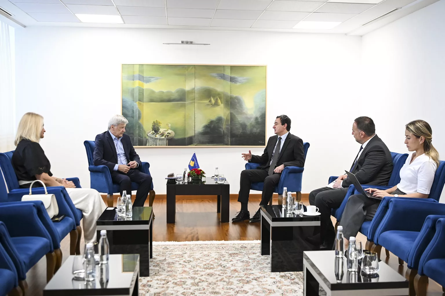 Kryeministri në detyrë i Republikës së Kosovës, Albin Kurti, mirëpriti sot në takim Drejtorin Ekzekutiv të Raiffeisen Bank International, Johann Strobl dhe Shefen Ekzekutive të Raiffeisen Bank në Kosovë, Anita Kovaçiq.