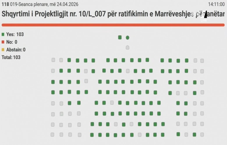 Me 103 vota për, asnjë kundër dhe asnjë abstenim, deputetët e Kuvendit të Republikës votuan Ligjin për ratifikimin e marrëveshjes për anëtarësimin e Kosovës në Bordin e Paqes.