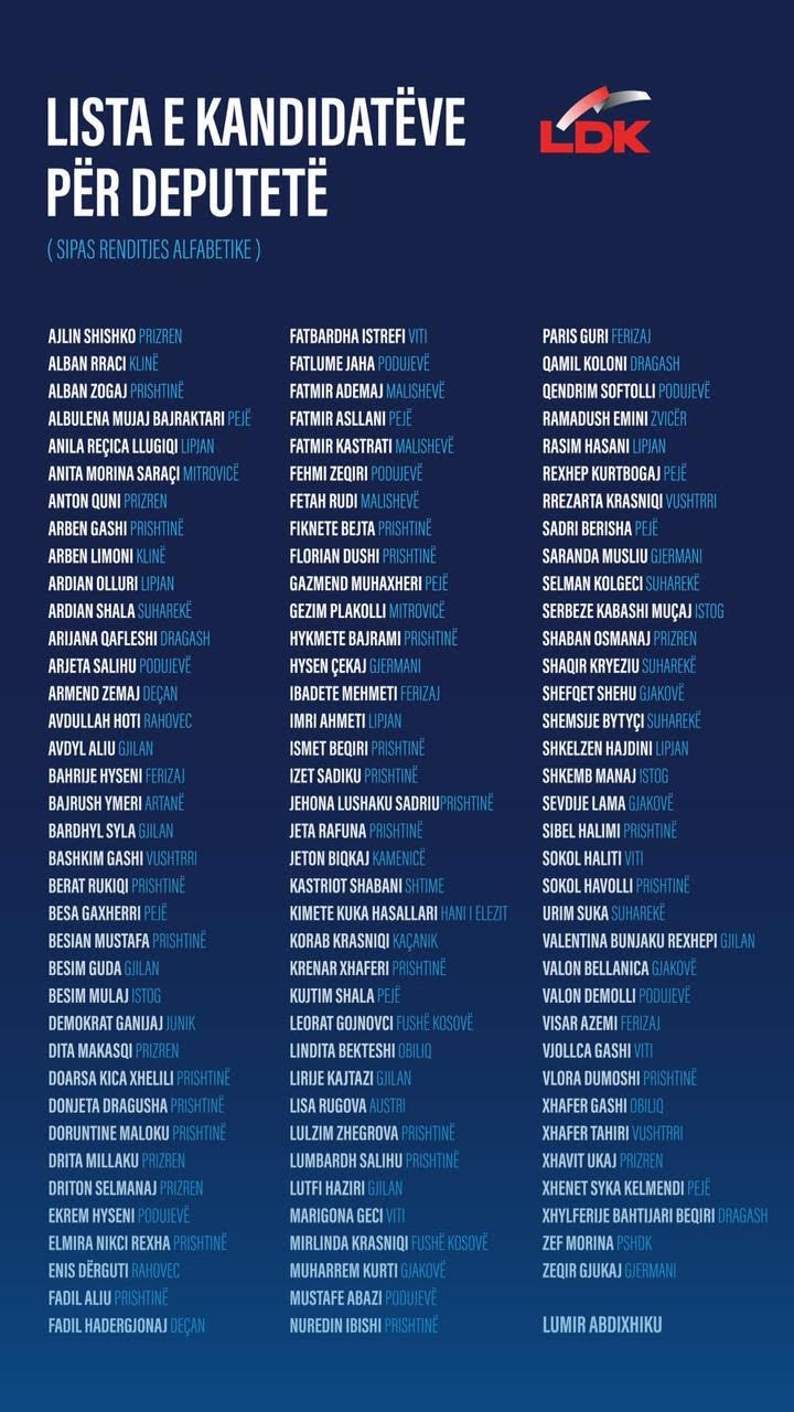 Pas kësaj mbledhje LDK-ja ka bërë publike 110 kandidatët që do të pjesë e listës.