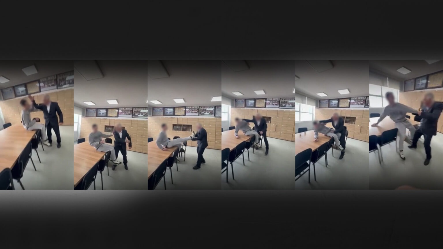 Në videon që ka arritur në redaksinë e KALLXO.com shihet një mësimdhënës i kësaj shkolle derisa e godet një nxënës.