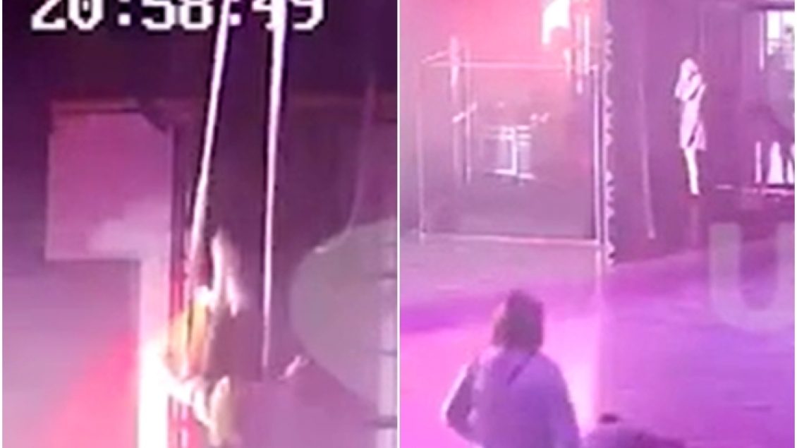 Partnerja e tij Kamilla, e cila po shikonte anash si pjesë e performancës, shihet duke ikur në prapaskenë, me sa duket e tronditur nga rrëzimi i tij i tmerrshëm.