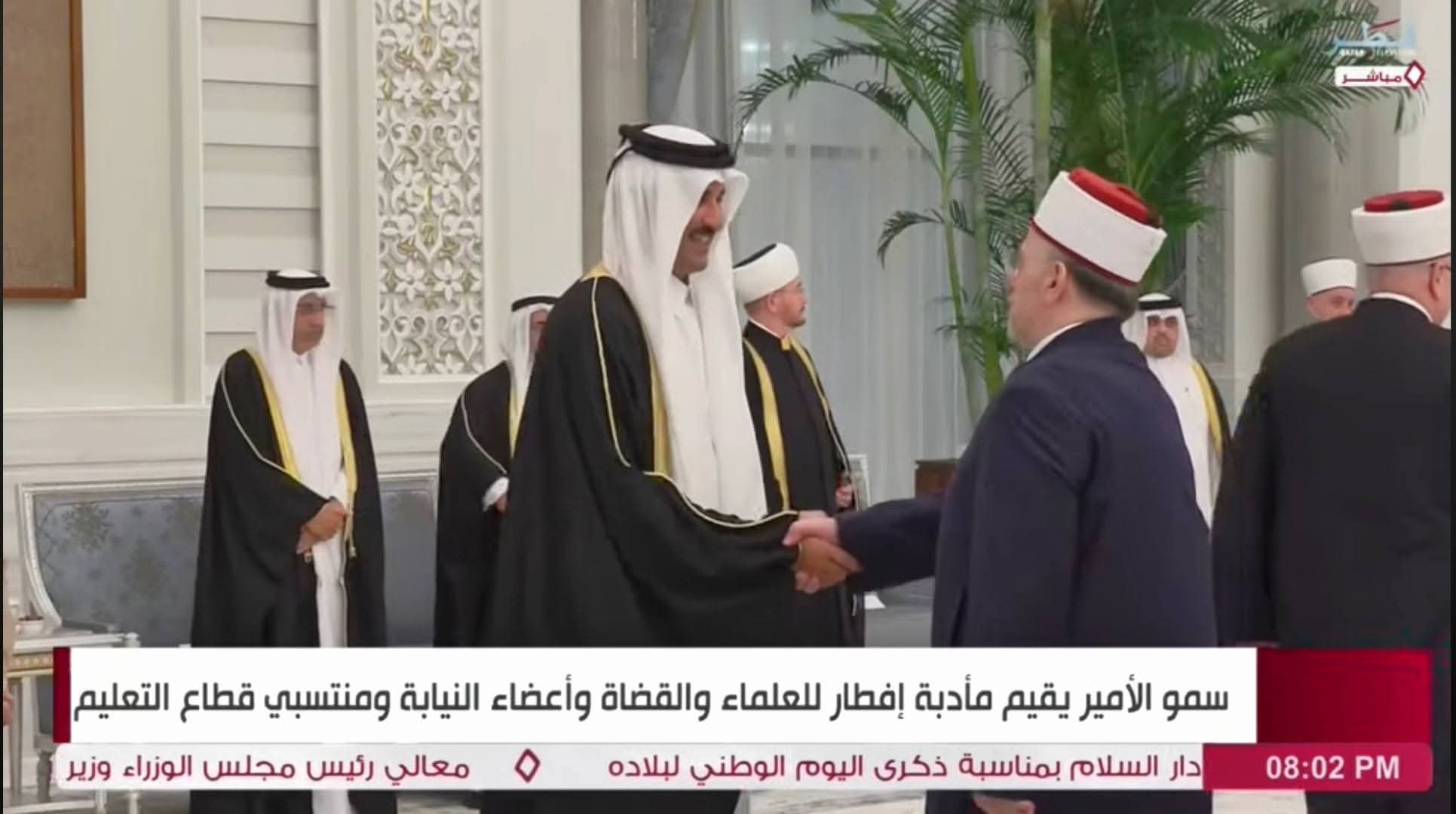 Iftari u shtrua në pallatin e Emirit në Doha, ku të ftuar ishin dijetarë, gjykatës dhe myftinj nga vende të ndryshme të botës islame.