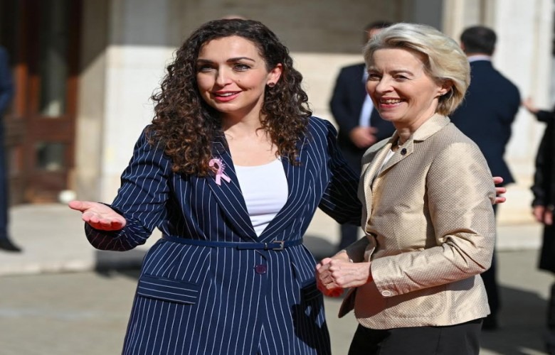 “Presidentja Osmani theksoi se reformat e suksesshme dhe përparimi i vazhdueshëm i Kosovës në indekset ndërkombëtare të demokracisë dhe sundimit të ligjit janë dëshmi e qartë e përkushtimit të vendit tonë ndaj integrimit evropian. Në këtë kontekst, ajo ritheksoi rëndësinë që Kosovës t’i jepet statusi i vendit kandidat për anëtarësim në Bashkimin Evropian, duke gjetur mënyra për thyerjen e bllokadës aktuale që ekziston në BE”, vijon njoftimi nga bisedat gjatë takimit të dyshes Osmani-Von der Leyen.