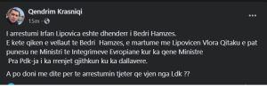 I arrestumi Irfan Lipovica eshte dhenderr i Bedri Hamzes.