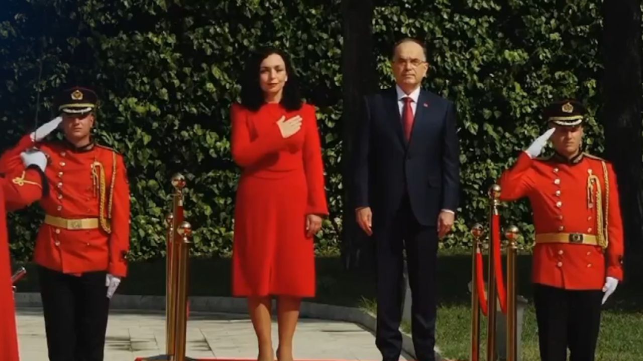 Presidentja e Kosovës, Vjosa Osmani është pritur me ceremoni zyrtare në Tiranë nga homologu Bajram Begaj.