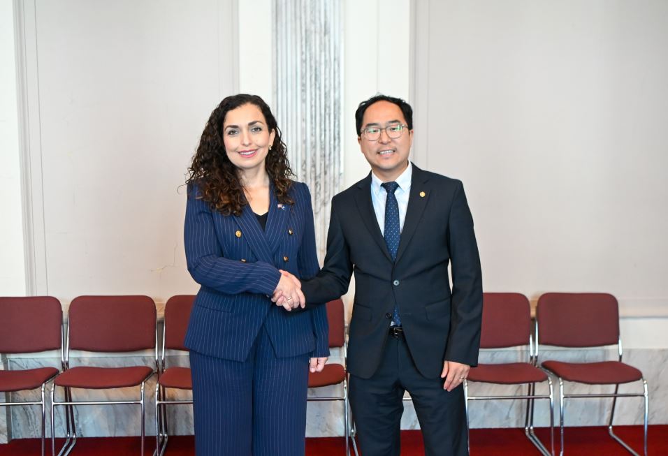 Presidentja e Kosovës, Vjosa Osmani, gjatë vizitës së saj në Washington D.C., është takuar me Senatorin amerikan Andy Kim.