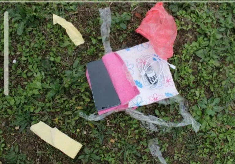 Gjatë inspektimit brenda perimetrit të institucionit, SHKK njofton se është gjetur një qese e dyshimtë, brenda së cilës ishin të fshehur në mënyrë të kamufluar një Samsung, një mini-telefon dhe një kabëll mbushës.