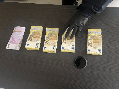 Gjatë kontrollit të veturës, nga njësia K9 në pjesën e bagazhit, në vendin e destinuar për pajisje e ndihmës së parë, është zbuluar një pliko e verdhë e fshehur, e cila përmbante mjete monetare në shumë totale prej 65,000 euro”, thuhet në komunikatë.