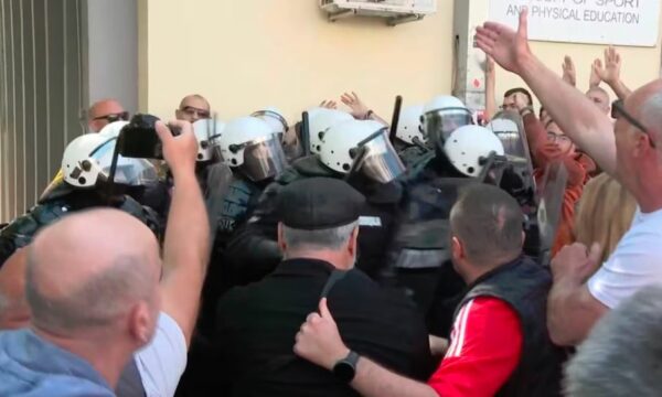 Në pamjet e publikuara në rrjetet sociale shihet se policia ka goditur me shkopinj gome protestuesit dhe ka përdorur gaz lotsjellës. Demonstruesit reaguan duke u shtyrë me policinë, duke hedhur shishe dhe duke i spërkatur me ujë. Në disa momente, ata ngritën duart lart për të treguar se nuk kërkonin përplasje, raporton Radio Evropa e Lire.