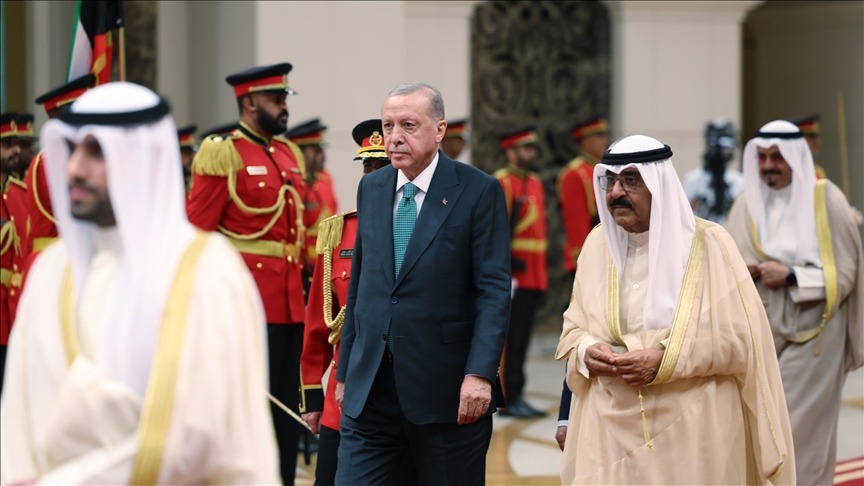 Avioni i presidentit Erdoğan u ul në Aeroportin Ndërkombëtar të Kuvajtit dhe u prit me një ceremoni zyrtare nga Emiri i Kuvajtit, Mishal Al-Ahmad Al-Jaber Al-Sabah.