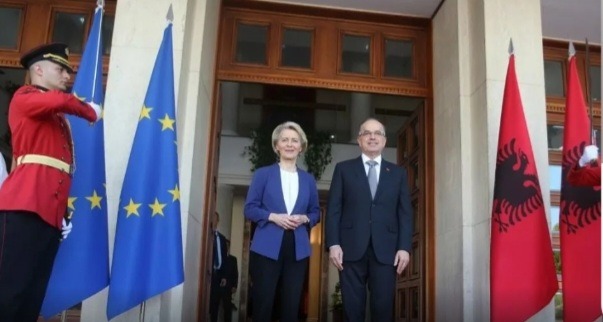 Në një postim në platformën X, Von der Leyen, e cila ndodhet në Tiranë në kuadër të punimeve për Samitin e Procesit të Berlinit, bën me dije se temë e diskutimit me Presidentin Begaj ka qenë zgjerimi i Bashkimit Europian me vendet e Ballkanit Perëndimor.