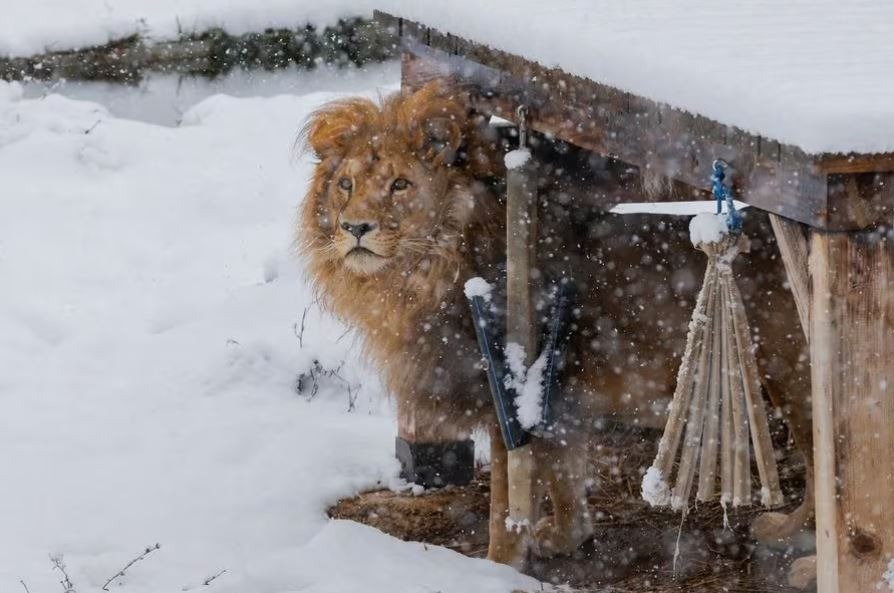 Ndërsa bora e parë e këtij dimri mbuloi Strehimoren e Arinjve të Prishtinës në kryeqytetin e Kosovës, vizitorët shijuan pamjen e një luani duke luajtur përpara se të strehoheshin shpejt në ambiente të mbyllura ku ishte instaluar një ngrohës për të shmangur temperaturat që bien nën zero.