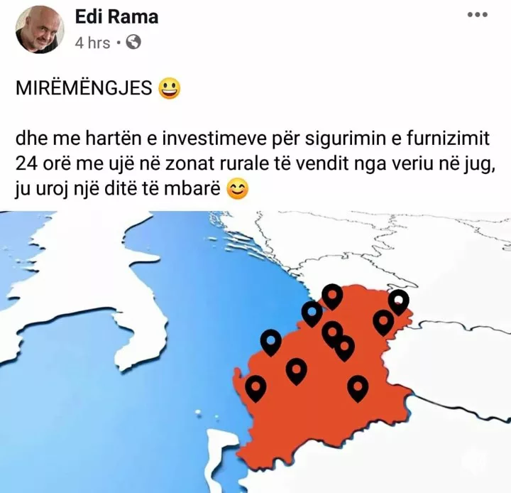 Në vitin 2019 Kryeministri i Shqipërisë, Edi Rama kishte publikuar një harte në të cilën ai tregonte për investimin për furnizim me ujë.