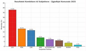 Sipas Qendres për Hulumtime Sociale Ekonomike Politike “ALTERNATIVA”, observator i matjeve të opinionit publik, në pyetjën drejtuar qytetarëve për “Zgjedhjet e e rregullta komunale 2025”, e cila ka realizuar sondazhin për partitë politike në Kosovë me një pyetje të vetme, drejtuar të anketuarëve, se; Cilit subjekt politik në Kosovë do t’i besonit.? Përgjigja ka rezultuar me rënie sasiore të dy subjekteve politike PDK dhe LDK, ndërsa AAK ka ruajtur minimalisht komunat ekzistuese, derisa VV ka shënuar rritje të theksuar, krahasuar me rezultatet e zgjedhjeve paraprake komunale, ndërsa PDK edhe përkundër rënjes, vazhdon të mbetet e para edhe pse vlerat numerike tregojne rezultat më të ultë se në zgjedhjet e kaluara.
