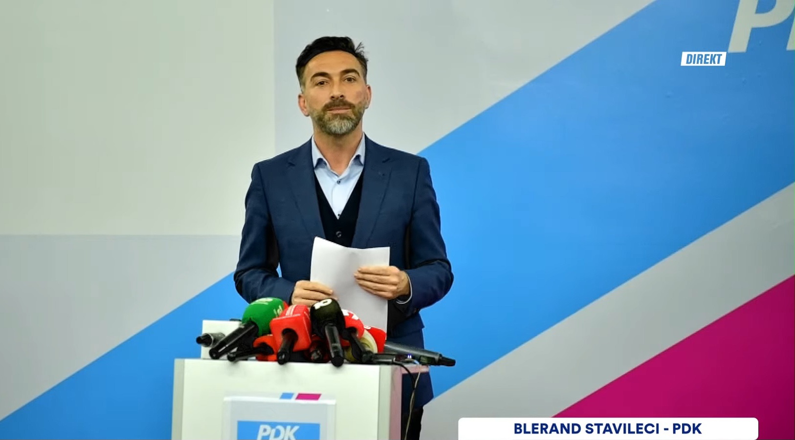 Blerand Stavileci nga PDK-ja, në një konferencë për media pak minuta pas mesnate, tha se kjo parti ka dalë e dyta.