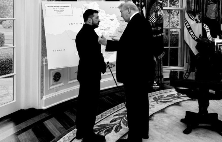 Presidenti i SHBA-së, Donald Trump dhe Presidenti ukrainas Volodymyr Zelensky zhvilluan një takim të rëndësishëm të hënën pasdite në Zyrën Ovale, ku në qendër të bisedës ishte një hartë e titulluar “Harta e Konfliktit Rusi-Ukrainë”, që tregon territorin e pushtuar nga Rusia dhe zonat e kontestuara në Ukrainë.