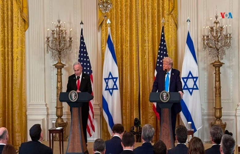 Presidenti Trump njoftoi planin e tij, pa dhënë hollësi specifike, gjatë një konference të përbashkët për shtypin me kryeministrin izraelit Benjamin Netanyahu.