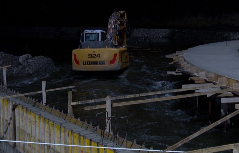 Uji i lumit Ibër ka depërtuar pas në mesnate në vendpunishten ku është duke u ndërtuar ura e re për këmbësorë që lidh veriun dhe jugun e Mitrovicës, duke shkaktuar vështirësi për ekipet e punimeve.