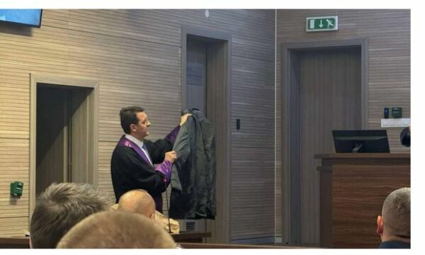 Në gjykimi ndaj Dejan Pantiq, Milun Milenkoviq, Aleksander Vlajiq dhe Miomir Vakiq për sulmin terrorist ndaj zyrave të Komisionit Komunal Zgjedhor (KKZ) në Mitrovicën e Veriut në dhjetor të 2022-ës, prokurori Bekim Kodraliu, prezantoi para gjykatës xhaketën e cila ishte sekuestruar me rastin e arrestimit të Pantiqit.
