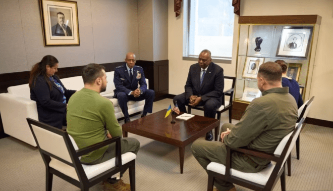 Presidenti i Ukrainës, Volodymyr Zelensky, e nisi ditën e parë të vizitës në Uashington më 11 dhjetor me një lutje për liderët ushtarakë të Shteteve të Bashkuara për ndihma shtesë për vendin e tij të rrethuar, duke u thënë atyre se “ne nuk do të dorëzohemi” në luftë kundër pushtimit nga presidenti i Rusisë, Vladimir Putin.